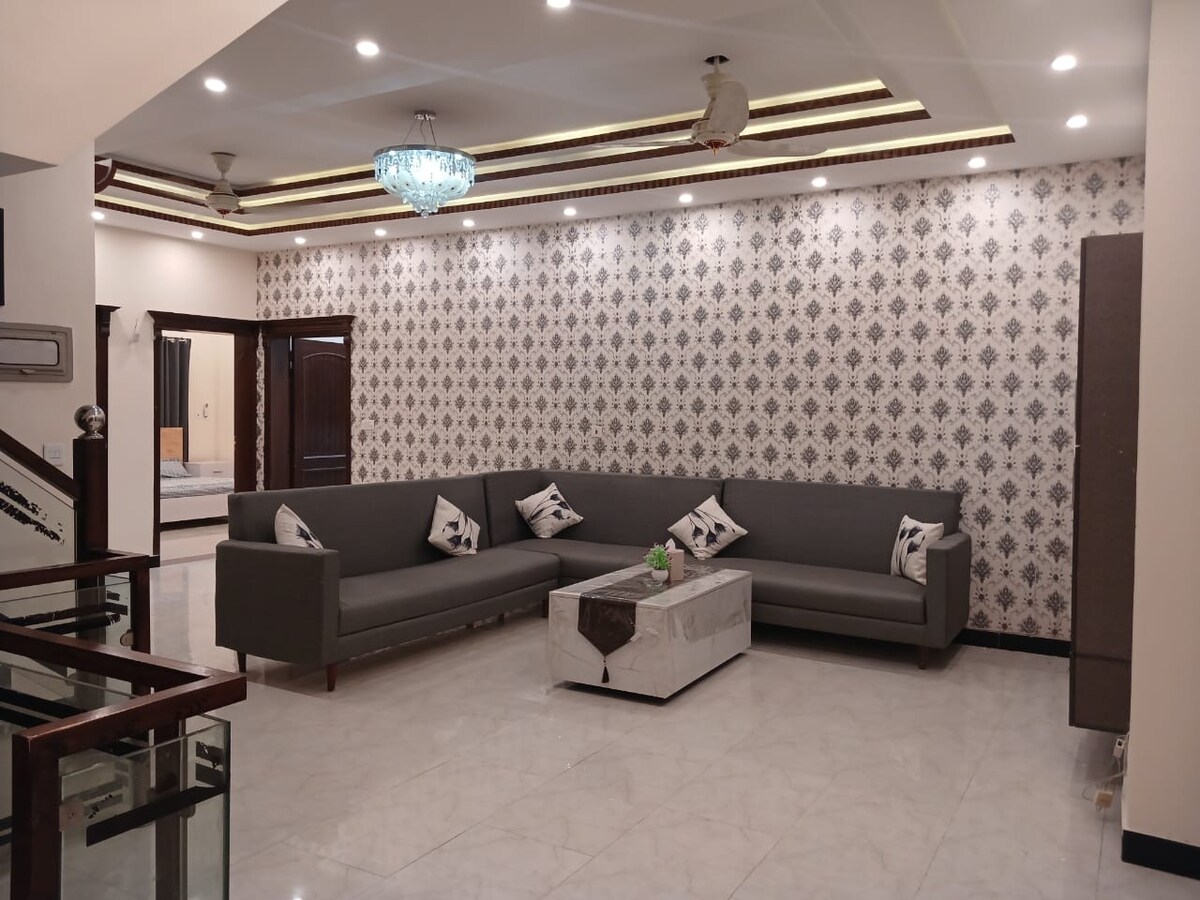 Ingen andre utleiesteder slår denne overdådige, sentralt beliggende, sikre og fredelige, vakkert designede og smakfullt møblerte, uavhengige boligen med tre soverom, egen inngang og parkering for familier, forretningsreisende og alle som ønsker seg et kongelig luksushjem med sentral beliggenhet. Nyt moderne og vintage sjarm i denne kongelige, splitter nye villaen. Ekstraordinært overdådig designmøbler, romslige rom, grøntområder, spektakulær utsikt og arbeidsplass. Stor, vakker hage for å være vertskap for sammenkomster.