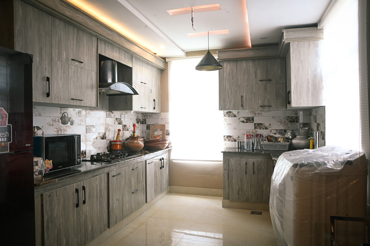 Oppdag den koselige leiligheten vår med ett soverom, perfekt plassert i hjertet av Islamabad. Dette stilige stedet passer perfekt for familier, par, enslige reisende eller forretningsreisende, og tilbyr komfort og bekvemmelighet for oppholdet ditt. ► Moderne interiør: romslig soverom, elegant kjøkken, koselig stue. ► Bygningen har Coffee Beans & Brim – spis inne eller ta med! ► Fasiliteter: trådløst nettverk med høy hastighet, gratis parkering, hage, sikkerhet døgnet rundt. ► Familievennlig, sentralt plassert – alt rett utenfor døren din.
