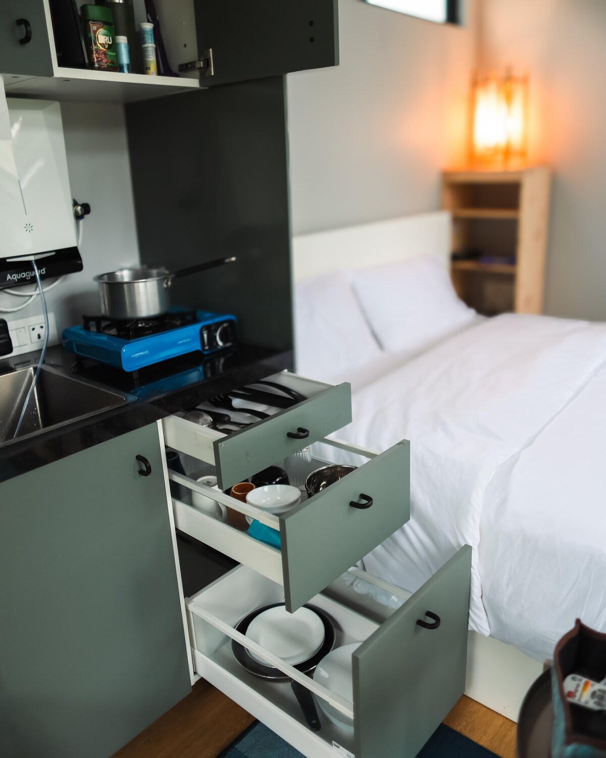 Eiendommen ligger bortgjemt i de fredelige omgivelsene i Khadakwaslas bakvann, hvor natur, kunst og arv smelter sammen til én oppslukende opplevelse. Hjemmet er bygget med gammelt treverk fra et 200 år gammelt tempel i en nærliggende stammeby, og det bærer varmen av historien i detaljene – fra de tunge tresengene til det kunstneriske kjøkkendesignet. Den er gjennomtenkt integrert med moderne arkitektur og er designet for å fremkalle en følelse av ro og tilknytning til landet.