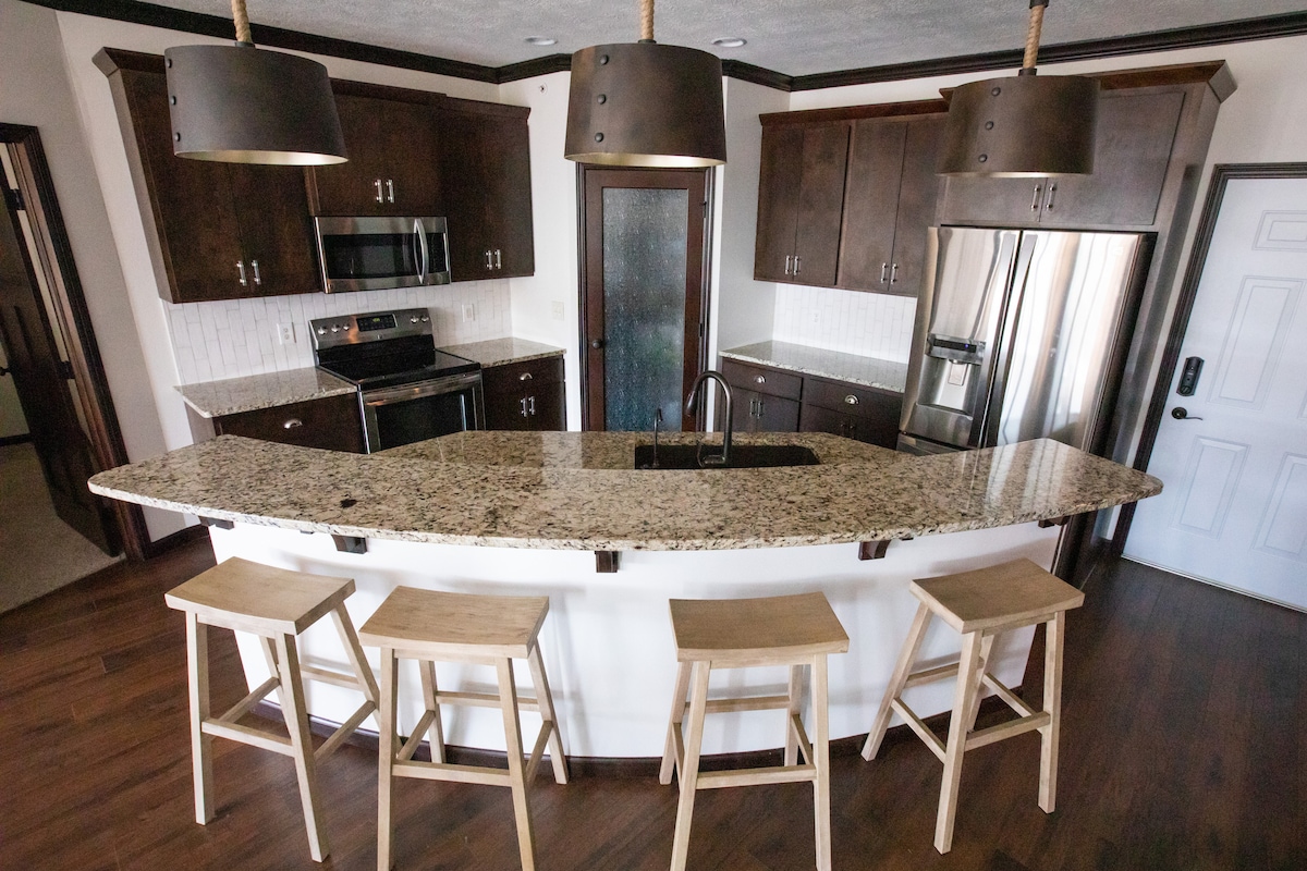 Beautiful 3 bedroom and 2 bath condo in popular destination of Bridges Bay Resort, the hottest resort in the area! 6 free passes to the indoor water park(check hours of availability), newly renovated outdoor pool with swim up bar open during the summer season. Access to huge dock system for swimming, fishing and boating. A fitness center, new arcade and children's outdoor play area. Spectacular lake views with all the comforts of a luxury home.