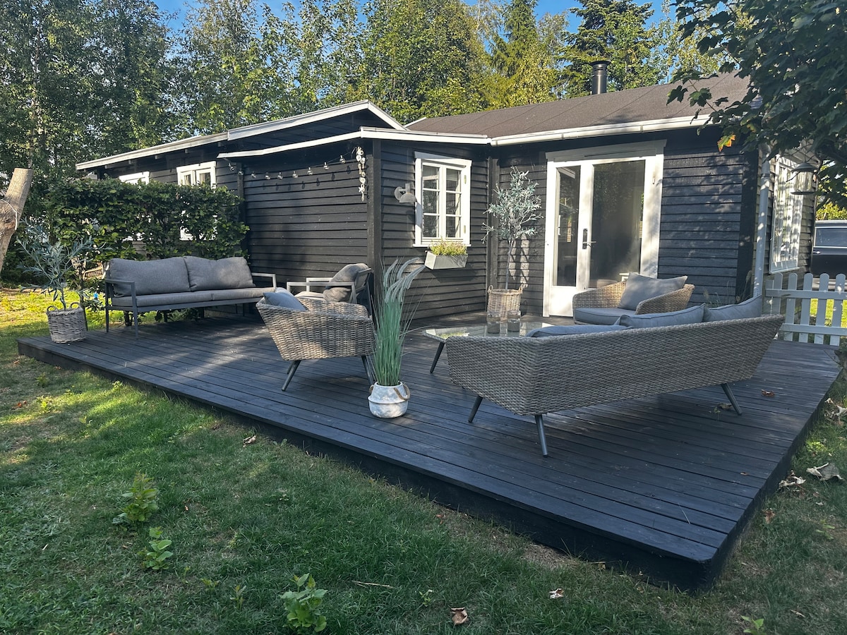 Eksklusivt feriehus ved skogen, tilgang til strand, badstue