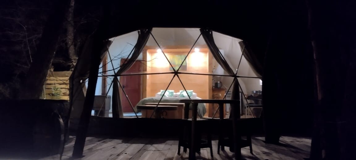 Kom i kontakt med naturen på denne uforglemmelige turen til fjellet! Flott kuppel, ideelt for å koble av siden det ligger i den rolige Shangri-la-sektoren i Valle de Las Trancas (km73). Du vil være i et biosfærereservat. Den ligger 2 km fra hovedveien (via en grusvei) i den høyeste delen av dalen, 11 km fra de termiske bassengene og skisenterne Fra kuppelen kan du ta stien til Laguna del Huemul, lavaveggen og Waldorf-hytta og mange andre