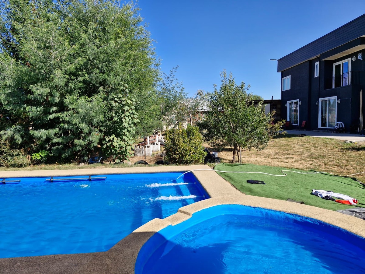 Ta med hele familien til dette fantastiske stedet med mange områder for å ha det gøy. med fire soverom totalt. To med eget bad. Tilgang til bassenget, tinaja, kvartssenger og quincho. Gratis spillrom med reservasjon (basseng, airhockeybord, karaoke). I nærheten av elven. Basseng med privat reservasjon delt med to hytter totalt. Privat krukke til hytta.