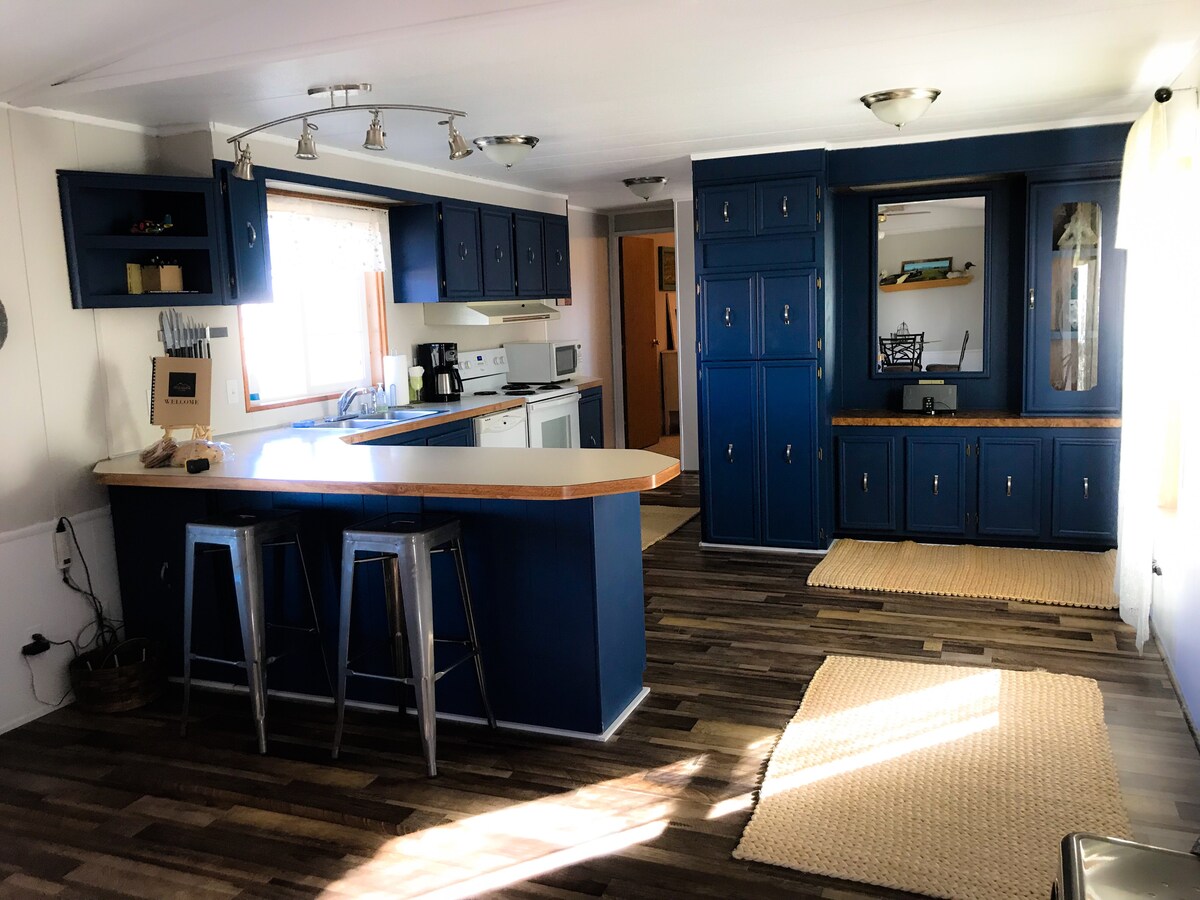 Dette er tre soverom, to med enkeltsenger og en ny oppgradering til en ny kingsize-seng på hovedsoverommet, ett bad med badekar/dusj. Nytt kjøkkenlinium gir spiseområdet et vakkert preg. Denne campingvognen er ren og enkel. Den har en romslig, inngjerdet bakgård for barn og hunder. Det er en fin veranda for å nyte kveldene. Vi er vennlige og elsker mennesker. Vi er vanligvis tilgjengelige for spørsmål eller hjelp. Hvis du ser etter et sted som er rimelig og komfortabelt å bo, prøv oss.