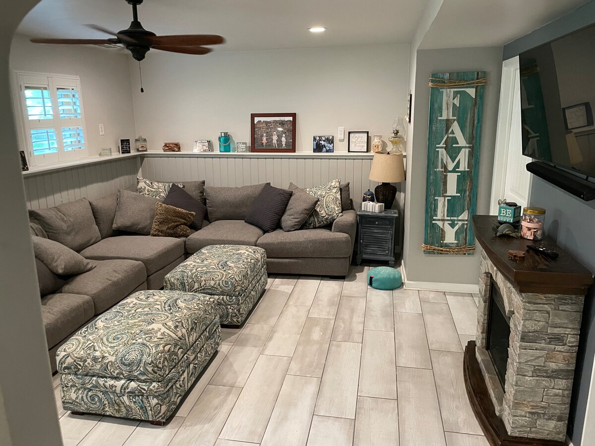 Nå kan du bruke teknologi til å rengjøre, noe som bruker ekstra tid på å fjerne smittestoffer og lufte, se ny innsjekking/utsjekking. Nydelig hytte, nyt fantastiske solnedganger fra verandaen på baksiden med spis i første etasje på kjøkkenet - fullt kjøleskap, mikrobølgeovn, komfyr, kaffebar og grill. Stuen har en komfortabel sofa og stol for lesing med queen-sovesofa og TV, første etasje, dusjkabinett i første etasje. Andre etasje har et loftstak med en queen size-seng, sminke, TV, skrivebord og stol. Inngang til nøkkelboks. Kjæledyr tillatt - ekstra gebyr.