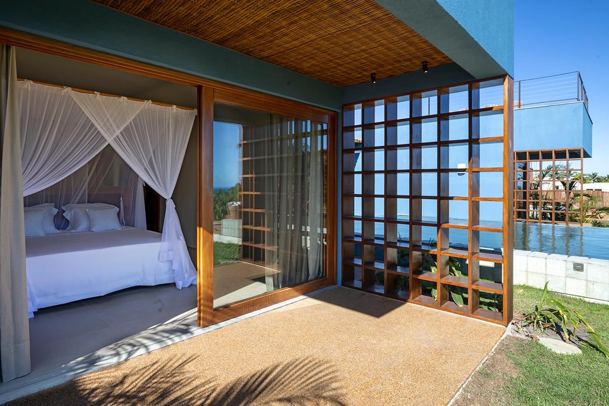 Hus med utsikt over Rio da Barra-stranden med kammerpike inkludert i prisen for reservasjonen 5 en-suiter med klimaanlegg område med basseng og grill gorenje Stekeovn og Everest ismaskin 65'TV og JBL-lydanlegg Sengetøy og håndklær toppklasse er tilgjengelig Huset har tilgang til fots til Praia das Tatarugas, via tunnel på klippen Nova og nylig innviet, inne i selveierleiligheten Villavista, foran det fremtidige Hotel Txai Vi er ved siden av Club Med