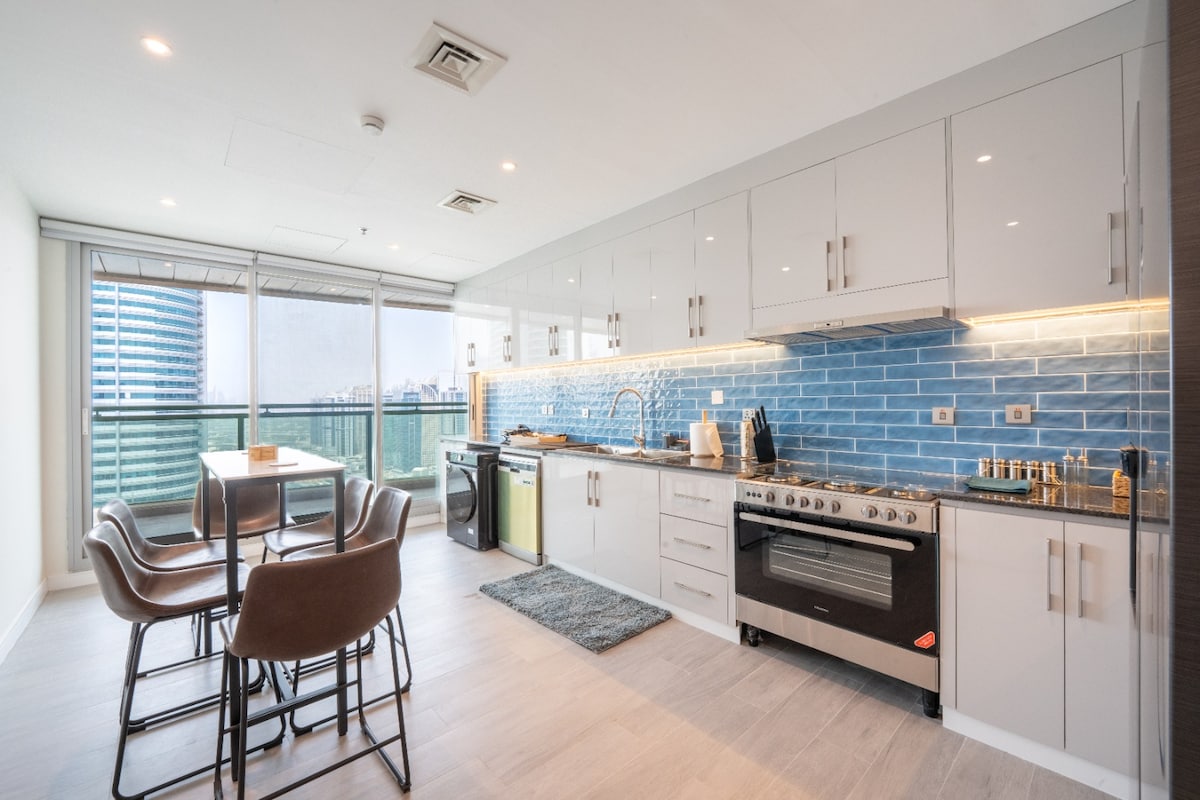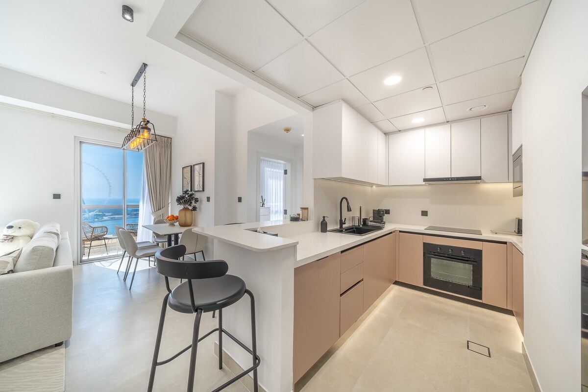 Velkommen til bare opphold. Vår romslige leilighet med to soverom i ettertraktede Dubai Marina ligger i en ikonisk bygning med direkte tilgang til Marina Walk, og bare fem minutter fra JBR-stranden. Vinduer fra gulv til tak gir fantastisk utsikt over marinaen, mens den åpne planløsningen har et moderne kjøkken og et luksuriøst bad. Nyt fasiliteter som et treningsstudio og et basseng med utsikt over marinaen. Denne to-romsleiligheten tilbyr den perfekte blandingen av komfort og bekvemmelighet for et uforglemmelig opphold i Dubai Marina.