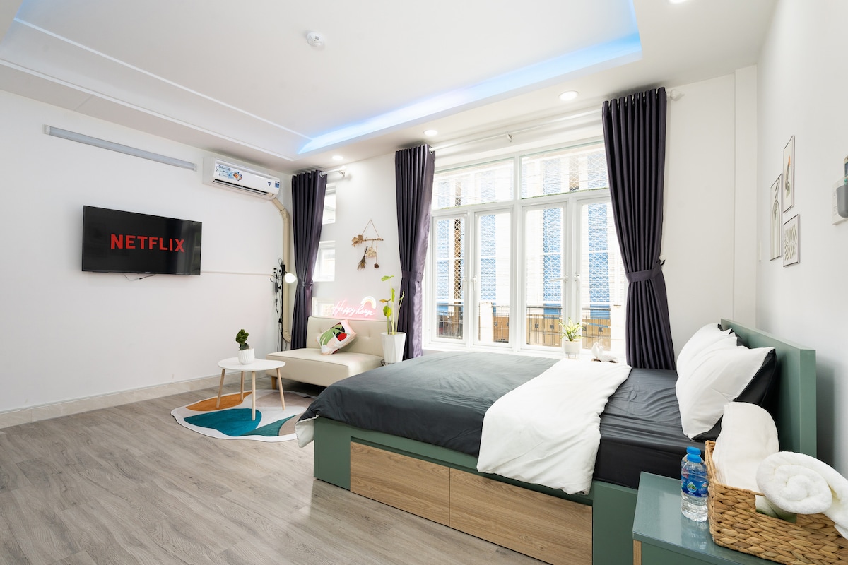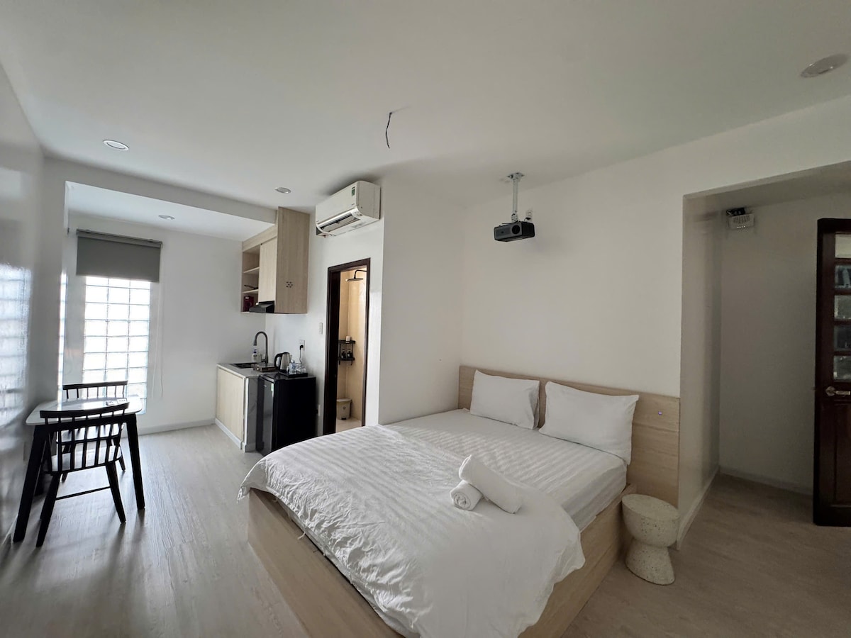 Hyggelig rom i hjertet av Ho Chi Minh-byen Nyt et koselig, komfortabelt opphold i distrikt 1, Ho Chi Minh Citys pulserende sentrum. Rommet vårt har en queensize-seng, arbeidsplass, privat bad, kjøkkenkrok, trådløst nettverk med høy hastighet og en smart-TV. Få skritt unna ikoniske severdigheter, kaféer og lokale perler, er det den perfekte basen for å utforske byen. Vertene dine, Van Anh og Jonas, gleder seg til å gjøre oppholdet ditt uforglemmelig! parkering tilgjengelig to minutters gange
