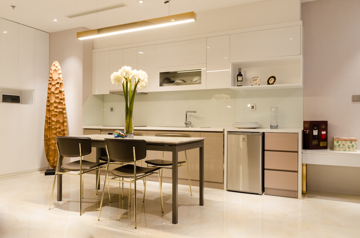 + Leilighet i Landmark2-bygningen, ved siden av Landmark81. + Dette er en Officetel-leilighet (kontor + hotell) som tillater Airbnb. + Soverommet har en luksuriøs madrass i memory foam, kingsize 1,8 x 2 m, perfekt og komfortabel, god for ryggsmerter. + Det er vaskemaskin og tørketrommel. + Hygiene og renhold er min høyeste prioritet. Sengetøy og håndklær fornyes alltid ved ankomst. + Det er gratis rengjøringstjeneste for langvarige opphold.