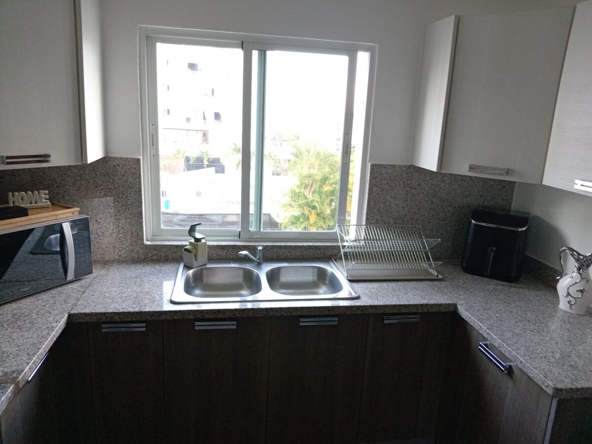 Grunnleggende velkomstfrokost inkludert Netflix, Disney, 117 kanaler MAX Utmerket beliggenhet. Blue Mall 10 min, Downtown Center 8 min, Núñez de Cáceres 2 min. Av Gustavo Mejía Ricard noen minutter unna. Banker, apotek, supermarkeder. Acropolis Center, de fleste pizzeriaer og hurtigmatrestauranter, La Locanda, Adrián tropical, Andre's Carnes, La posta, rte Sofia, Meson la cava ligger 9 minutter unna. El Higüero 8 min. Frisør Pretty By Nanci 6 min. Det er Mirador Sur-parken.