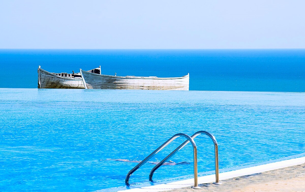 Solrik studioleilighet med utsikt over bassenget | Kaliakria