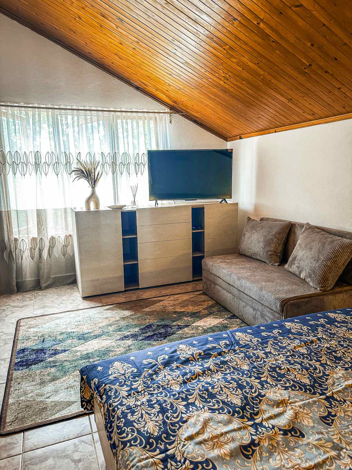 Gerana Estate ligger i den pittoreske landsbyen Rogachevo, tre km fra de fantastiske strendene i Albena, og tilbyr en fantastisk sjøvue og grenser til en gammel furuskog, noe som skaper en privat atmosfære,perfekt for avslapning. Beliggende på en vakkert anlagt parklignende hage på 3500 kvm, et sesongbasert oppvarmet basseng med et omkringliggende privat strandområde, solsenger, husker, varm jacuzzi, badstue, grillområde,med steinovn, barneområde - med tretopphus, sklie, husker,trampoline,fotballbane.