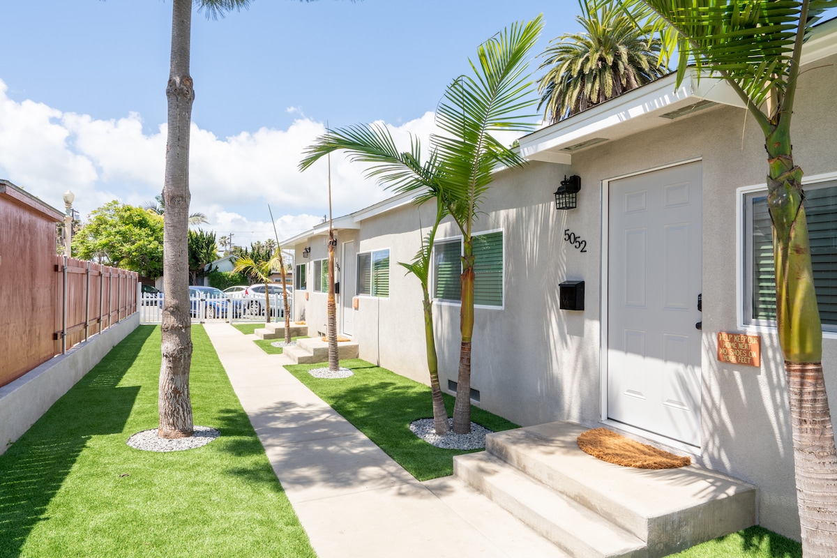 Den fantastiske bungalowen vår gir deg alle hjemmets bekvemmeligheter mens du er på ferie. Bare pakk kofferten. Bungalowen vår ligger noen skritt fra Ocean Beach's Dog Beach, og er en flott måte å nyte oppholdet ditt i San Diego på – bare noen minutter fra sentrum og andre flotte attraksjoner. Sentralvarme og klimaanlegg, sentralenhet, energisparende vinduer med doble ruter! Se det tilstøtende hjemmet vårt ved siden av. airbnb.com/h/charmingobhome-dennis-julie