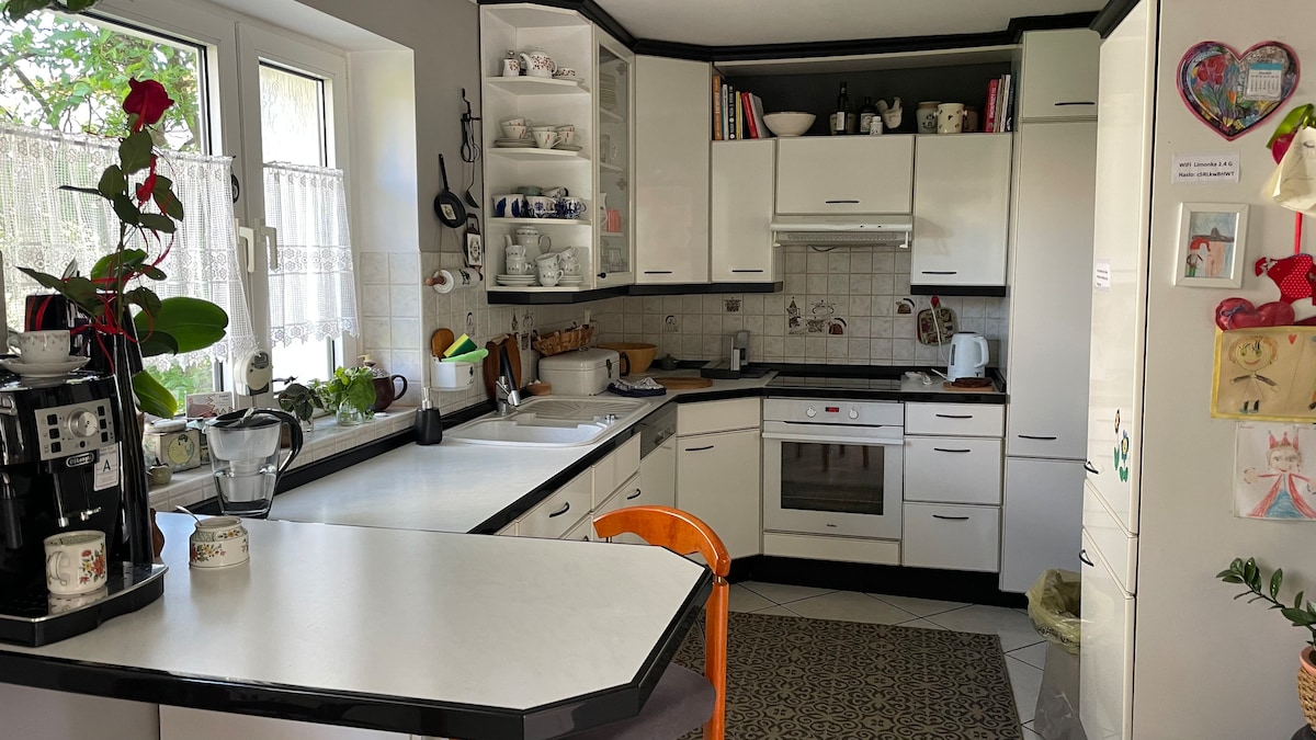 Stallen vår er en del av et posttyske hus, som ligger på en to hektar stor tomt på 160 m2, en terrasse på 70 meter pluss et bindingsverkshus, apparatene i den gamle landsbyen er bevart. Mulighet for å bruke det private biblioteket i den delen av huset som vertene bor i. Engen er et naturlig dyrelivsmiljø. Terrassen (lunsj og loungeområde) brukes også til å observere naturen. Ved siden av huset ligger den gamle frukthagen (hengekøyer) solfylte og skyggefulle steder for de som leter etter fred. Stort kjøkken. Ett bad, dusj.
