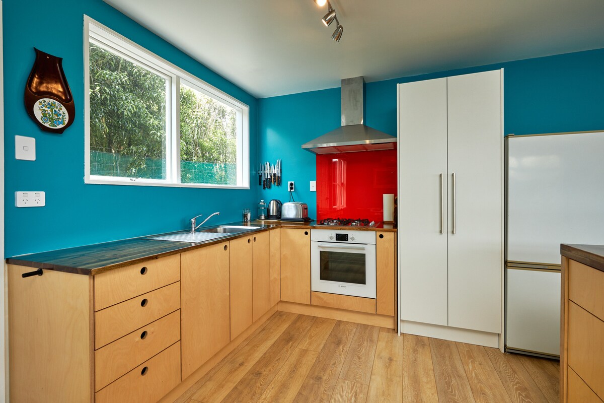 Denne hytta med tre soverom har polerte betonggulv i kjøkkenet, stuen og spiseområdet. Soverommene er fullt teppebelagt og har utsikt over fjellet og havet. To av soverommene har tilgang til terrassen. Det fullt flislagte badet har et badekar med løveføtter, dusj, toalett og to vasker. Det fullt utstyrte kjøkkenet har oppvaskmaskin, og det er et utvendig vaskerom med vaskemaskin og tørketrommel. Eiendommen er omgitt av den historiske Maori Pa.