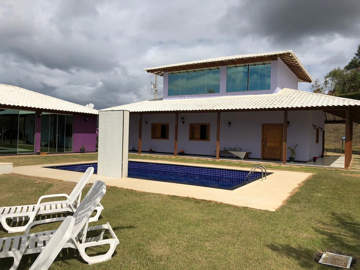 Ideell for ferie, små grupper og familie 20 minutter fra sentrum av Marechal 1t20 fra hovedstaden Vitória/ES Bygget areal 5000 m2, med lagune og foss Hus med to etasjer Fire soverom, ett av dem en suite, og ytterligere tre bad, fire dobbeltsenger, én dobbeltmadrass og fire enkeltsenger, stue, balkonger, kjøkken og vedovn. Fullt møblert og med trådløst internett Plass til parkering, gåturer, meditasjon, Med grillplass, biljard, svømmebasseng og plass til å spille ball vi aksepterer kjæledyr