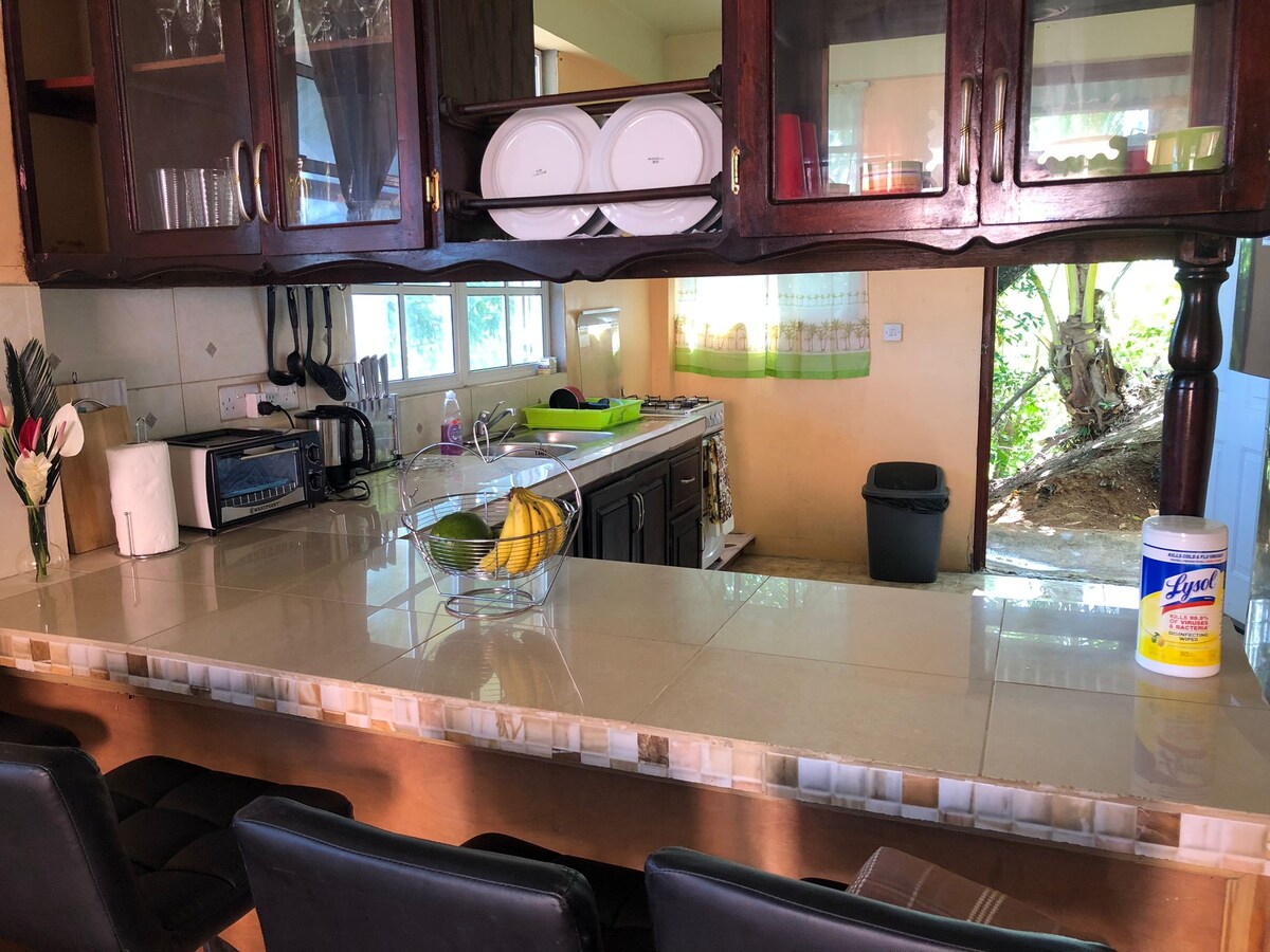 Unngå støyen og slapp av i denne vakre leiligheten som ligger i hjertet av naturen. Våkne til lyden av fuglesang, nyt morgenkaffen med fantastisk utsikt over frodig grøntområde og pust inn den friske, rolige luften. Dette rolige gjemmestedet tilbyr den perfekte blandingen av komfort og ro – ideelt for alle som søker fred, privatliv og avslapning. Bare noen minutter (ca. 10 km) unna hovedstaden Roseau, men likevel en verden unna kjas og mas. Mero-stranden ligger kun 5,5 engelske mil fra leiligheten.