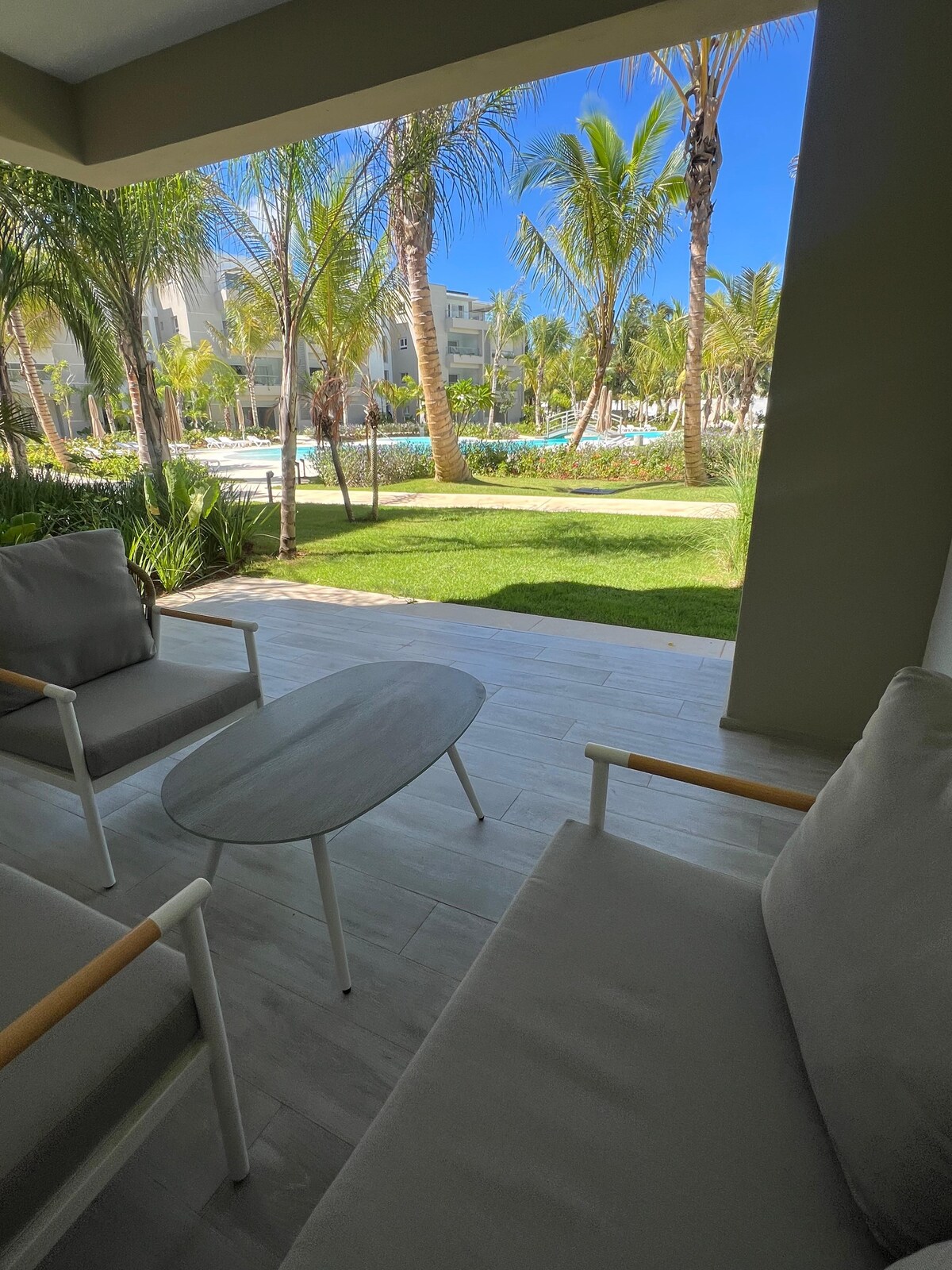Velkommen til vår praktfulle 120 m 2 leilighet i Dominicus, Dom. Rep. hvor avslapning og luksus møtes. Den romslige stuen vår med åpent kjøkken inviterer deg til å bli værende og nyte. Med utsikt over bassengene og den frodige hagen, tilbyr balkongen en fantastisk utsikt som revitaliserer sansene dine og gir deg uforglemmelige øyeblikk av ro. Opplev det karibiske magien i vårt innbydende tilfluktssted som kombinerer komfort og eleganse i perfekt harmoni.