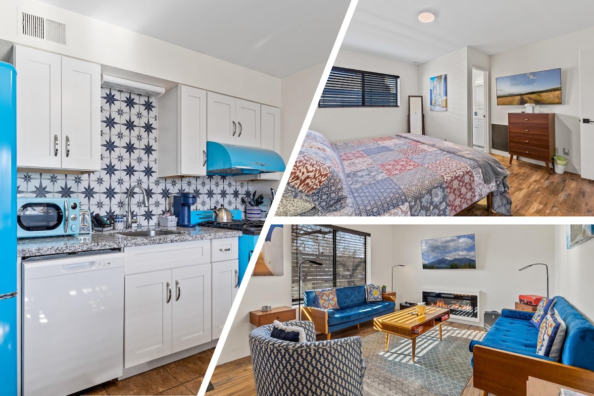 Velkommen til Golden Antler! Slapp av ved peisen eller under stjernene med utsikt over San Francisco Peaks. Eller stopp på vei til Grand Canyon! Det spesialbygde hjemmet vårt med to soverom og ett bad ligger i nærheten av tur-/sykkelstier, alt innenfor få minutters avstand fra huset. Beliggende 30 minutter til Sedona, 1 time til Grand Canyon + 5 minutter fra Sunset Crater/Waputki National Monument. Et fredelig + moderne sted som tilbyr ro og stil. Perfekt for par, små familier eller grupper på fire + et spedbarn. Nyt et vakkert og avslappende opphold!