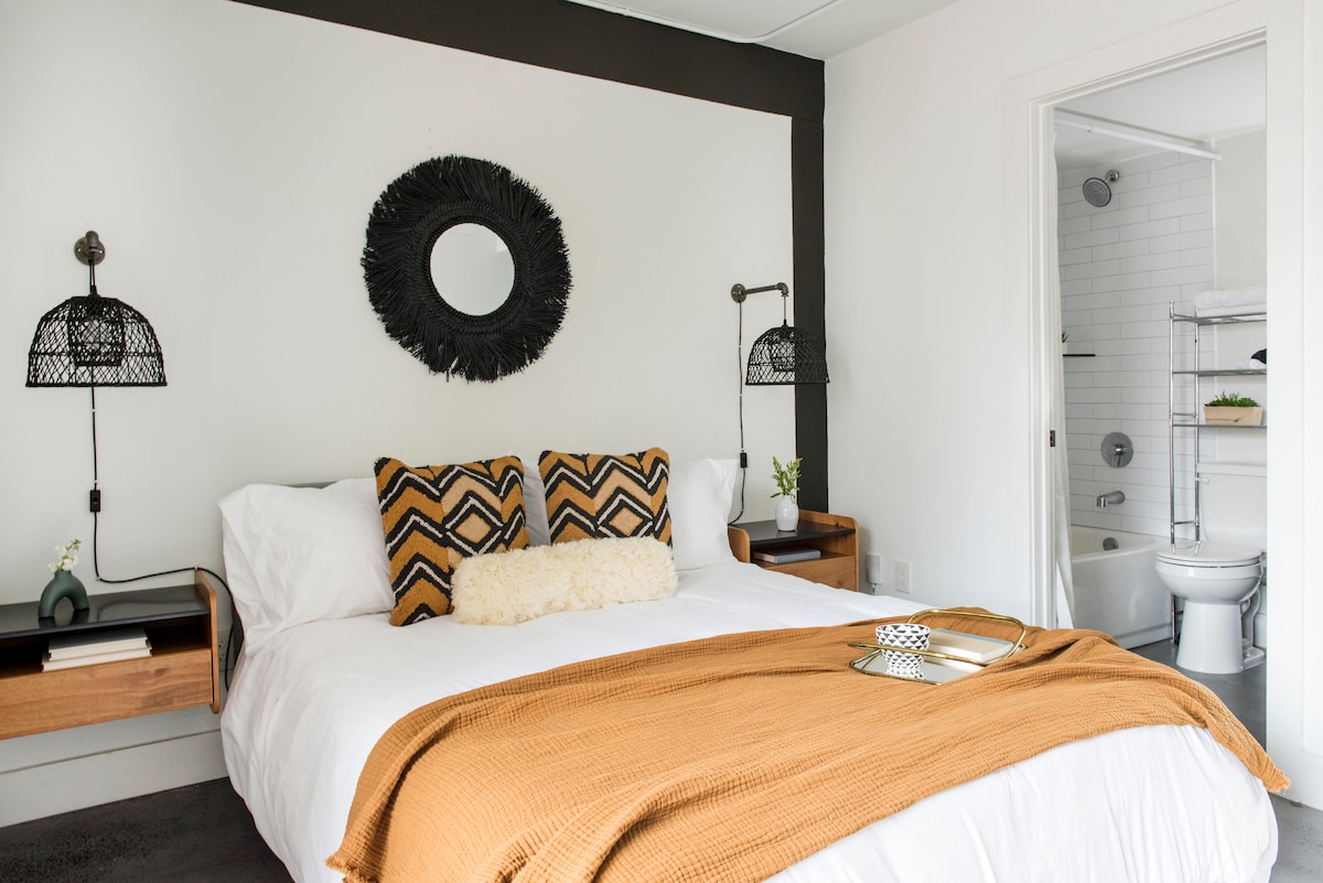 Studioleilighet i boutiquehotellstil i sentrum av Atlanta – privat balkong og utsikt fra taket Nyt en boutiquehotellopplevelse i en studioleilighet i en vakkert restaurert bygning fra 1964, fullstendig ombygd i 2020. Hver enhet har en lignende, men unik innredning, med samme utforming og fasiliteter for et konsekvent opphold. Merk: Bildene representerer stilen på rommene våre, men den nøyaktige enheten din kan ha små designvariasjoner.