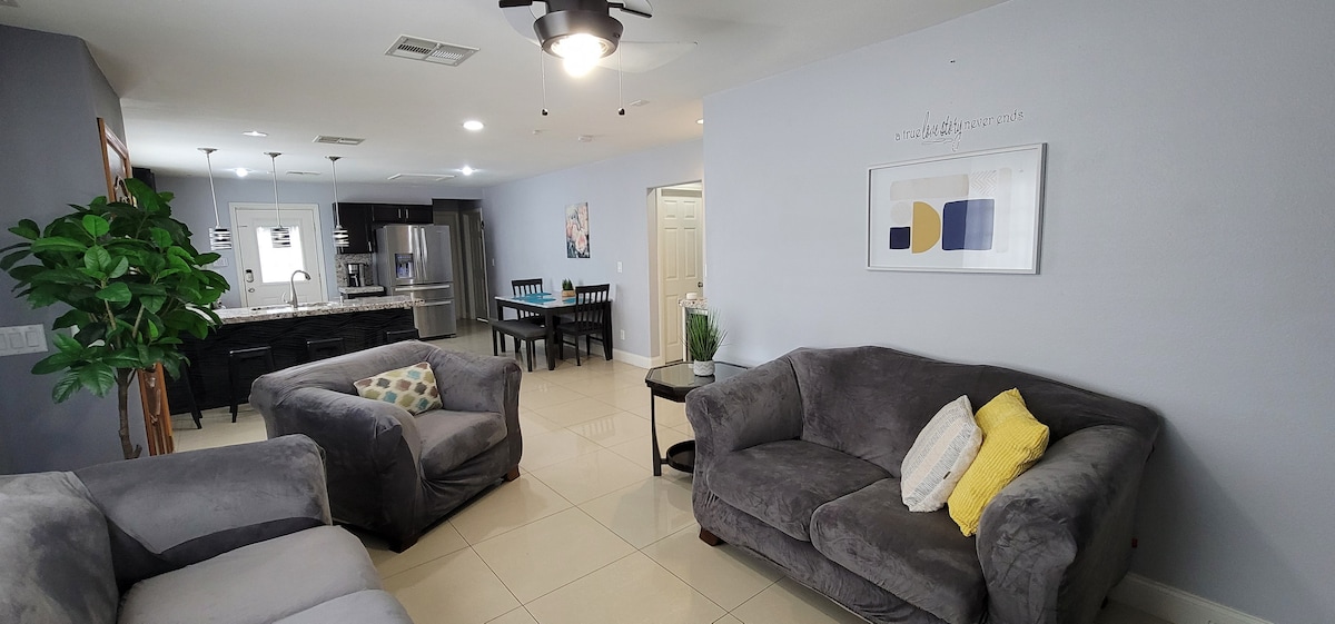 Clean,spacious and private 4-bedroom home designed for relaxing after busy Vegas days or long trip. Open layout, comfortable seating areas, and the coolest temperatures throughout the house make it easy for groups to stay together without feeling crowded. • 4 bedrooms (queen beds) • 2 bathrooms • 2 sofa beds for extra guests • Full kitchen • bluetooth speaker • Fast wifi – 602 Mbps + Smart TV • Brand new AC +auxiliary unit + ceiling fans in every room