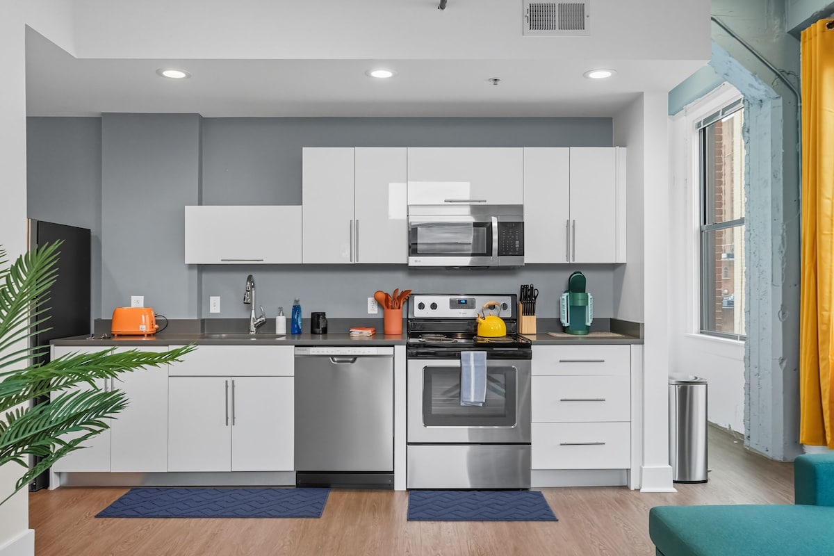 Bo i et stilig loft med to soverom i det historiske The Preserve at Heinz Lofts. Denne romslige enheten har høyt tak, store vinduer og en moderne, åpen planløsning som kombinerer historisk sjarme med moderne komfort. Med beliggenhet bare noen minutter fra Pittsburgh sentrum har du enkel tilgang til restauranter, natteliv og elvebredden, samtidig som du kan dra tilbake til et unikt og komfortabelt sted hvor du kan slappe av.