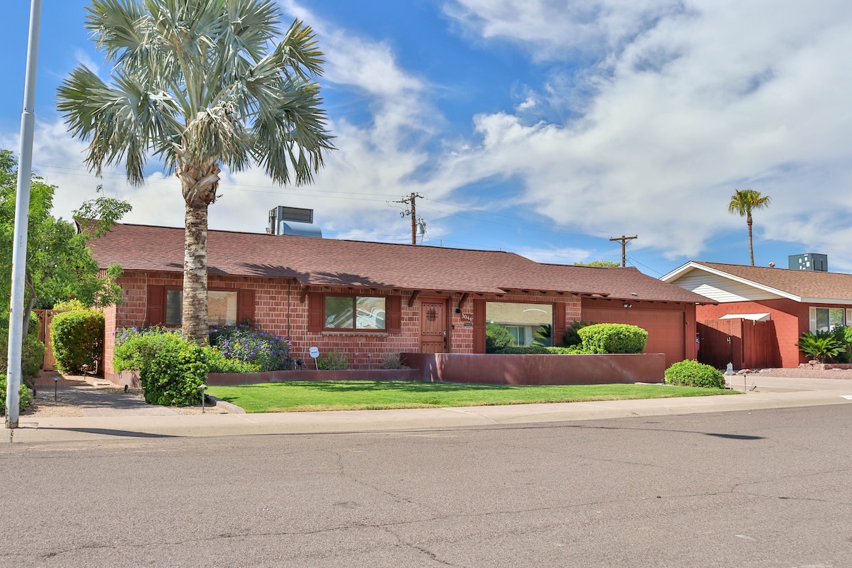 **BESTE BELIGGENHET I SCOTTSDALE – 4 MINUTTER MED UBER TIL ALT** OPPVARMET BASSENG/SPA/SPILLROM/GOLFBANE Ombygd vakkert unikt smart hjem bare 4 minutter til Scottsdale underholdning og gangavstand til kjøpesenter, dagligvarebutikk, treningssenter og restauranter. Bare fire minutter med Uber til det berømte morsomme nattelivet i gamlebyen Scottsdale, vinbarer, våren, golfresorter, tur- og utendørsparker. RASK 1000 WIFI, Netflix, surroundlyd, TV-er i soverom og garasje, Nest klimakontroll og nøkkelløs inngang. Dyrevennlig.