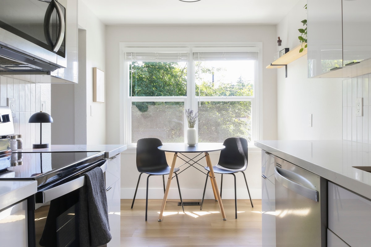 Velkommen til Seattle Skyline Views! Denne vakkert designede eiendommen ligger i rolig Queen Anne og har fantastisk utsikt over skyline, Lake Union og Space Needle. Den ligger noen minutter fra Seattle Center, Space Needle, Climate Pledge Arena, museer, restauranter og pulserende uteliv, og er en ideell base for familier, profesjonelle og oppdagelsesreisende. Komfortabelt plass til opptil åtte gjester, nyt uovertruffen komfort, fasiliteter og et førsteklasses sted å oppleve Seattles beste.