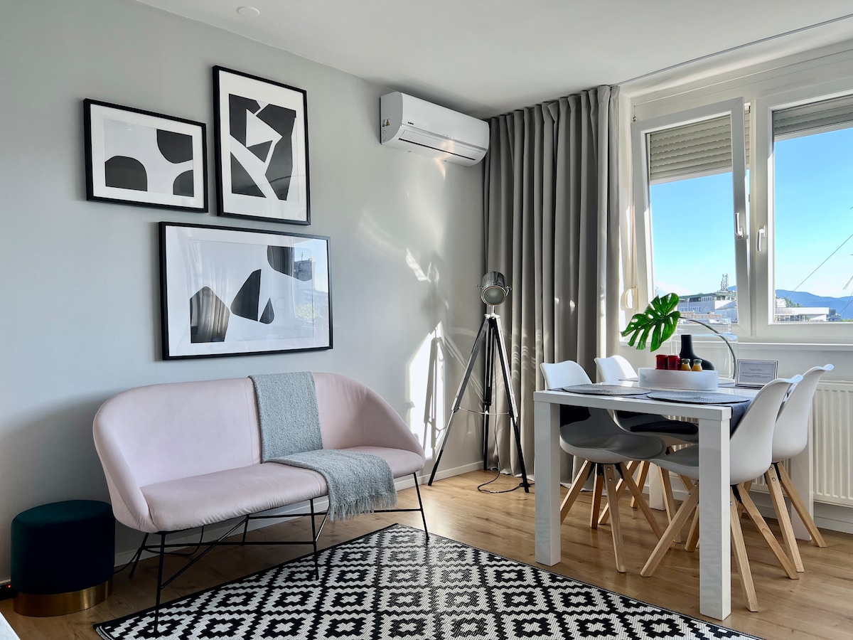 Velkommen til den sjarmerende og nyoppussede leiligheten vår, med fantastisk utsikt mot slottet. Stedet vårt er designet med naturlige farger og minimalistiske detaljer for å gi en komfortabel og utsøkt opplevelse. Beliggenheten er perfekt for reisende, siden den ligger i hjertet av byen og i gangavstand til alle de store attraksjonene. Enten du ønsker å utforske byen eller bare slappe av i fredelige omgivelser, tilbyr leiligheten vår den perfekte balansen.