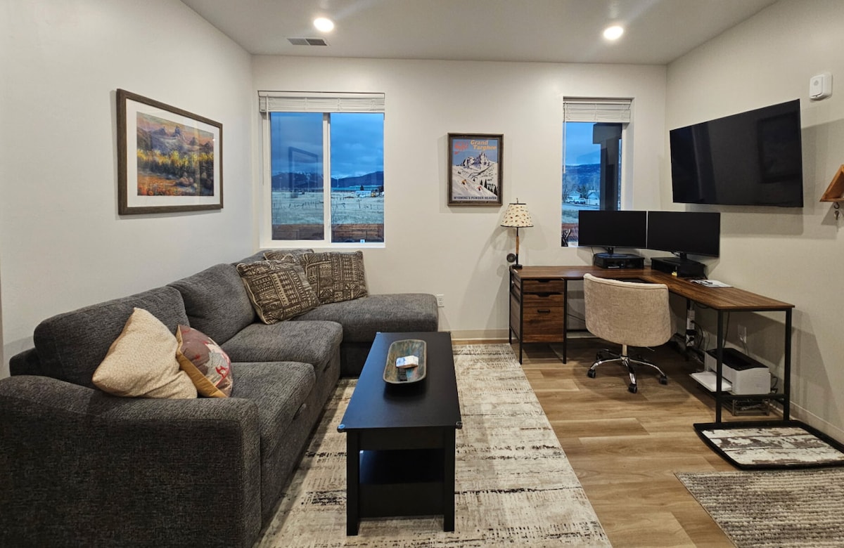 Kick back and relax in this brand new, stylish and comfortable condo. Its fresh and modern decor is perfect for a relaxing and cozy stay. The condo is located in an ideal location to create a home base for year round adventures. In the winter, enjoy world class skiing from multiple resorts. In the summer take in the breathtaking mountain views that the abundance of outdoor activities in Teton Valley offer.