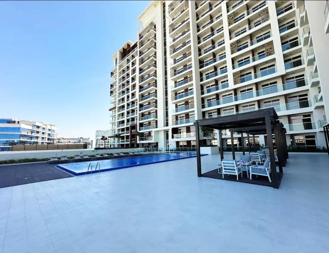 Sjarmerende leilighet med to soverom i Arjan, et nytt nabolag med god beliggenhet og lett tilgjengelig fra hovedveiene i Dubai. Smakfullt innredet og i nærheten av butikker og tjenester. Rommene tilbyr komfort og kvalitetssengetøy. Kjøkkenet er fullt utstyrt for enkel matlaging. Terrassen med privat basseng, som er sjelden i Dubai, inviterer deg til å slappe av, sole deg og dele minneverdige øyeblikk, for et perfekt opphold med familie eller venner.