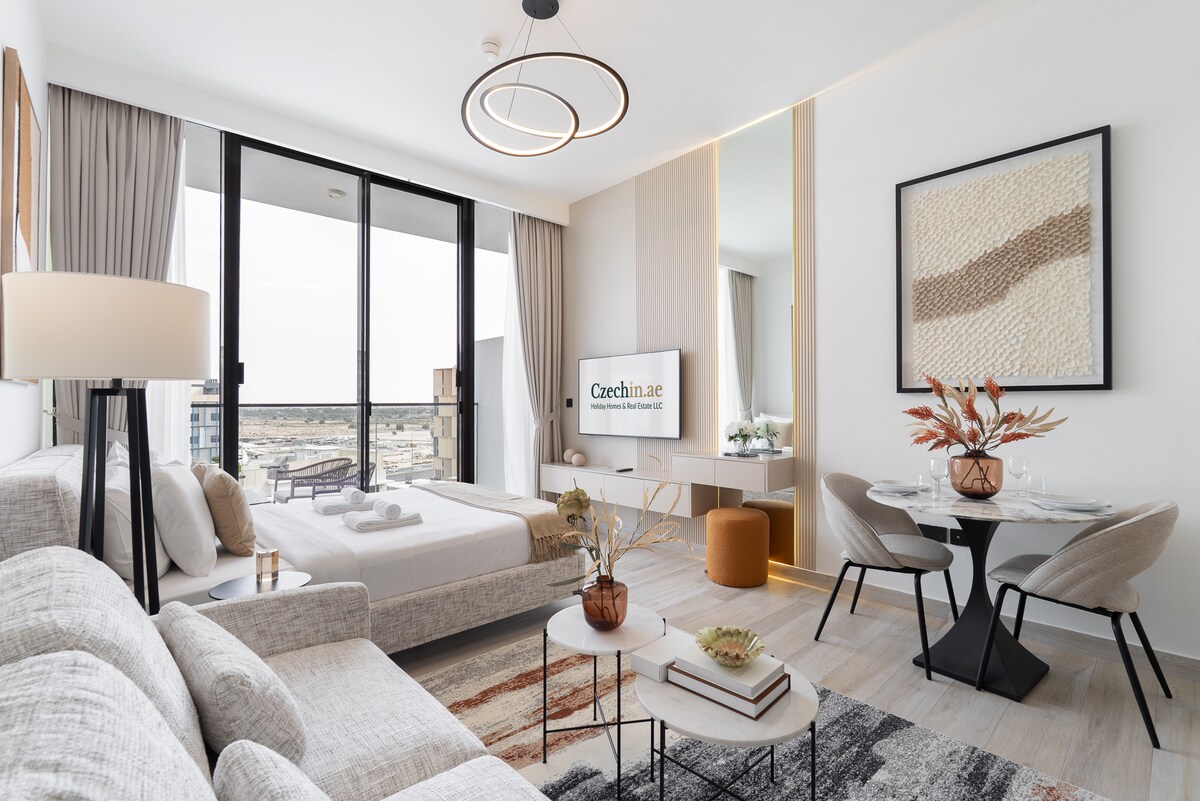 Forretningsreise eller turisme? Bo i en ny studioleilighet med privat terrasse blant de luksuriøse bygningene i Dubai. Boligen gir tilgang til: - Et svømmebasseng med kino - Et treningsrom - Grillplass - Avslapningsområde med utendørs fontene I nærheten av: - Dubai Miracle Garden og Dubai Butterfly Garden (5 minutter med bil) - Dubai Hills Mall (10 minutter med bil) - JBR Beach og Kite Beach (22 minutter med bil) - Alle fasiliteter (kafeer, butikker, restauranter)