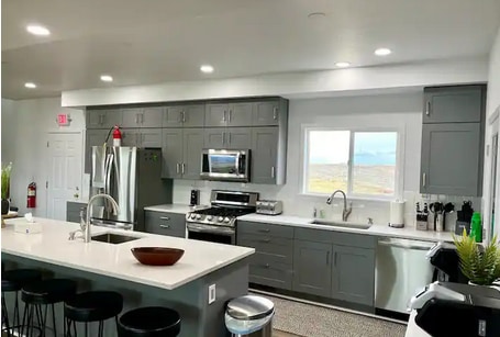 East Suite i Bunkhouse har plass til seks gjester: To soverom og én Murphy med queen memory foam-senger, kommode, nattbord, takvifter. Ett bad med tilpasset dusj, vask. Ett kjøkken med induksjonstopp, kjøleskap/fryser, dobbel vask. Ett familierom med en storskjerm, hvilestol og stol. Ett spiserom med bord, sitteplasser for seks personer. Én frokostdisk med plass til tre personer og en storskjerm. Ett delt vaskerom med vaskemaskin, tørketrommel og stor vask. Én delt bakgård med grill.
