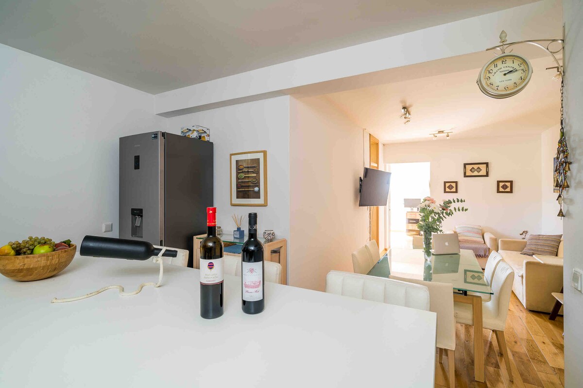 Nyt den unike utsikten over gamlebyen i Dubrovnik og Middelhavet fra balkongen. Smakfullt møblert, komfortabel, romslig og lys leilighet i et rolig, sjarmerende nabolag i åsene, med rikelig med fasiliteter og reservert parkering foran. Leiligheten har nylig renovert bad og kjøkken, og er utstyrt med trådløst nettverk, A/C og oppvarming, kabel-TV, Bluetooth-høyttaler, vaskemaskin og tørketrommel, komfortable madrasser og puter, sengetøy i bomull, luksuriøse toalettartikler og mer.