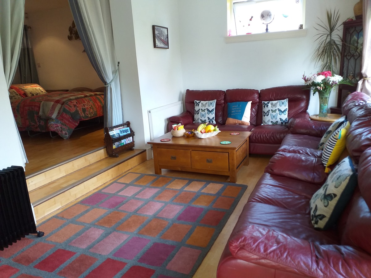 Airbnb-en min er stille, romslig, lys og i nærheten av sentrum, med gratis parkering på stedet( på innkjørselen), tilgang til privat hage , trådløst internett, TV freeview. Separat stor stue, separat bad, med egen inngang som er egnet for tre personer. Stille og trygt nabolag, i nærheten av portobello-stranden og foten av aurter sete og i nærheten av sentrum. 10 minutter å sitte i nærheten av holylrood-palasset.