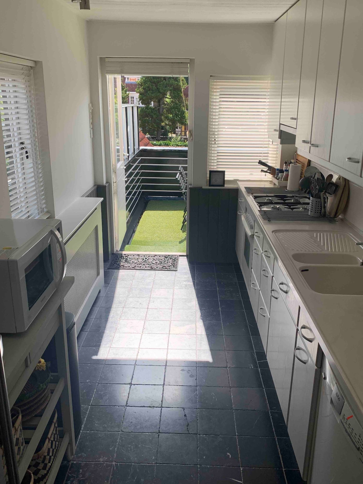 Dette sjarmerende rekkehuset (120 kvm) fra 1928 består av to etasjer og har en stor, solrik takterrasse vendt sørover, et ideelt sted å slappe av over frokosten og ta kveldsdrinker. Det har egen inngang og gratis parkering. Wassenaar er en nydelig liten by med fine restauranter innen fem minutters gange fra huset. Et ideelt sted å bo for å utforske (på sykkel) Haag, Delft, Leiden, Amsterdam og kystferi, eller for et middels opphold for expat-familier i overgang.