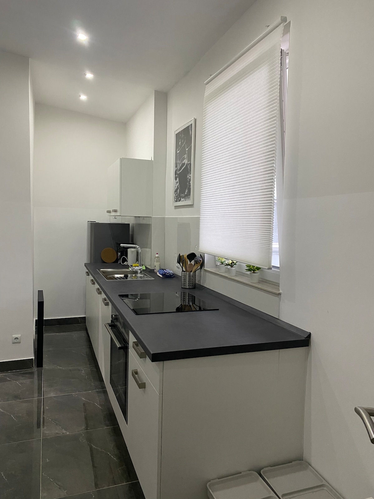 Slapp av i denne spesielle og rolige boligen. Sentralt plassert med korte avstander til Düsseldorf eller hele Ruhr-området, er dette et perfekt utgangspunkt for reisen din. Soverommet har bare en takhøyde på 1,35 m. Så du bør være litt sporty hvis du vil legge deg om natten. Resten av leiligheten er normalt tilgjengelig og kan brukes uten ytterligere begrensninger. Vi anbefaler å bruke tøfler. Spesielt om vinteren kan flisene være kjølige