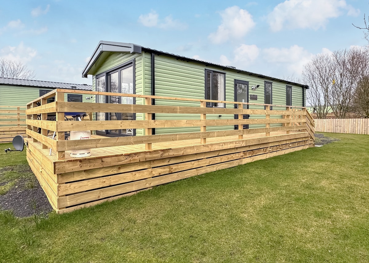 En luksuriøs feriecampingvogn som ligger på en førsteklasses, opphøyd beliggenhet med fantastisk utsikt over det vakre Galloway-landskapet og det omkringliggende jordbruksområdet.