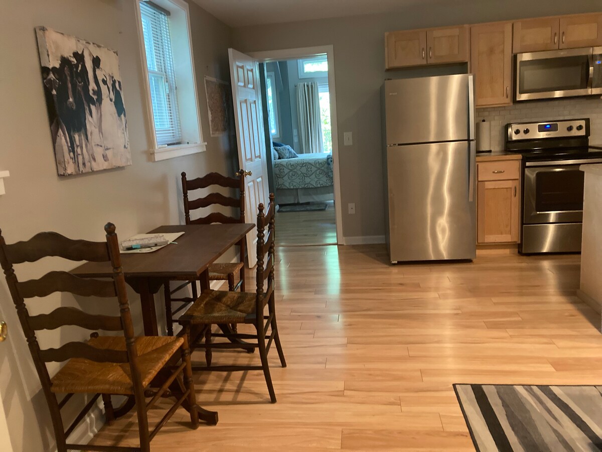 Hjemmet vårt i Pisgah Forest ligger i fossefallene. Leiligheten har komplett kjøkken, stor dusj og bålplass på terrassen for din fornøyelse. Dette området er et fristed for friluftsentusiaster, musikkelskere, turgåere og syklister. Hvis du planlegger å besøke delstatene og nasjonalparkene våre, må du sjekke hvilke stier som er åpne. Downtown Brevard er en sjarmerende fjellby med unike butikker, en rekke restauranter og kunstgallerier, og ligger bare 15 fra leiligheten.