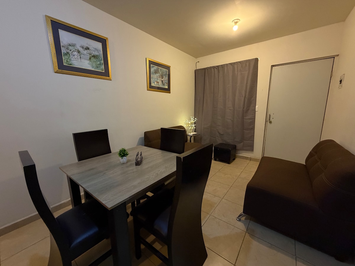 Cómodo departamento de 2 habitaciones y un baño, cuenta con un sofa cama matrimonial y 2 camas matrimoniales. Se encuentra en area céntrica con centros comerciales, cine, 10 minutos al centro en auto. El fraccionamiento es privado y cuenta con acceso controlado. Hay escaleras para subir al departamento.