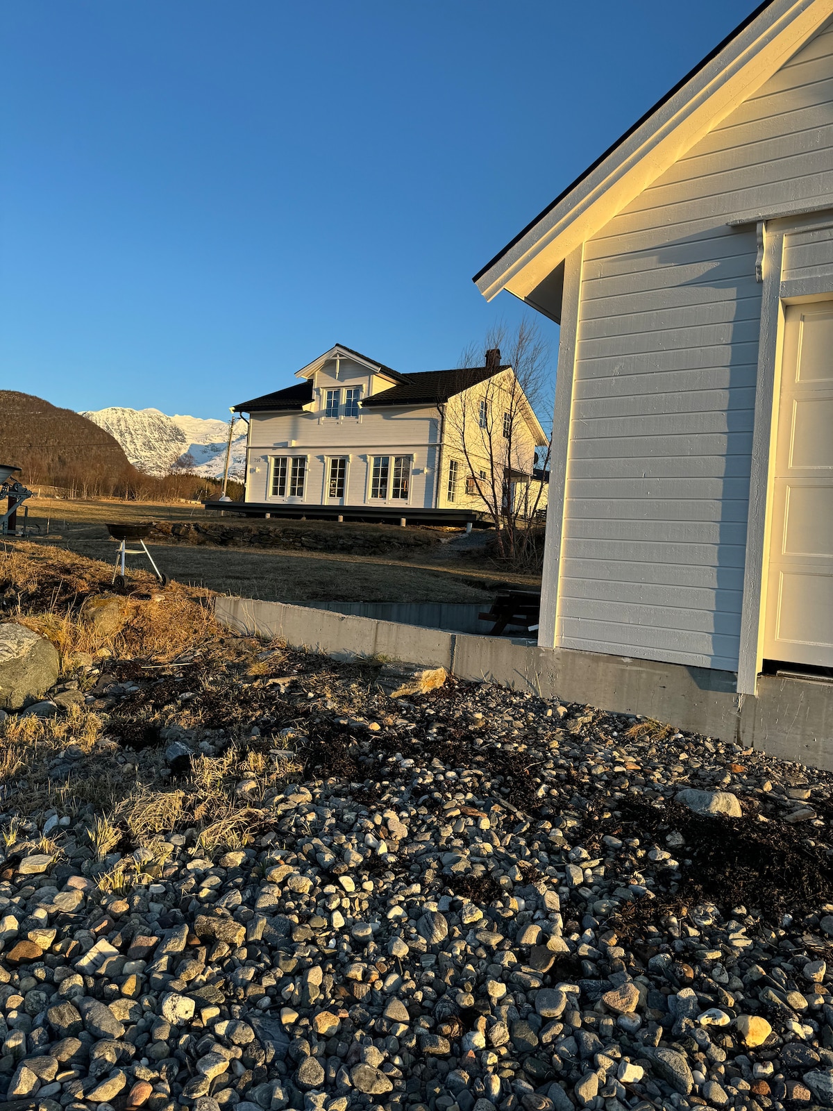 Nyoppusset hus, stille og rolig med god utsikt over sjø og fjell. Fiskemuligheter og turløyper i området. Opplev midnattsol om sommeren, og nydelig nordlys om vinteren. Fiberlinje med trådløst nett.