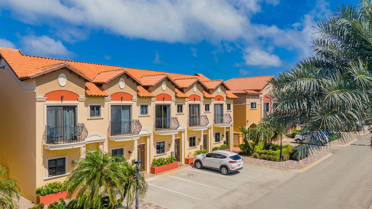 Velkommen til ditt øyhjem borte fra hjemmet, et vakkert innredet rekkehus med to soverom og tre bad i det rolige Gold Coast-samfunnet. Dette tilfluktsstedet er omgitt av frodige hager og ligger bare noen skritt fra et av de rolige fellesbassengene. Det er perfekt for reisende som ønsker en blanding av komfort, privatliv og enkel tilgang til Arubas beste strender. ✔ Open Design Living ✔ Fullt utstyrt kjøkken Trådløst nettverk✔ med høy hastighet. ✔ Balkonger ✔ Smart-TV-er ✔ Gratis parkering. ✔ Fellesskapsfasiliteter (basseng, treningsrom, tennis).