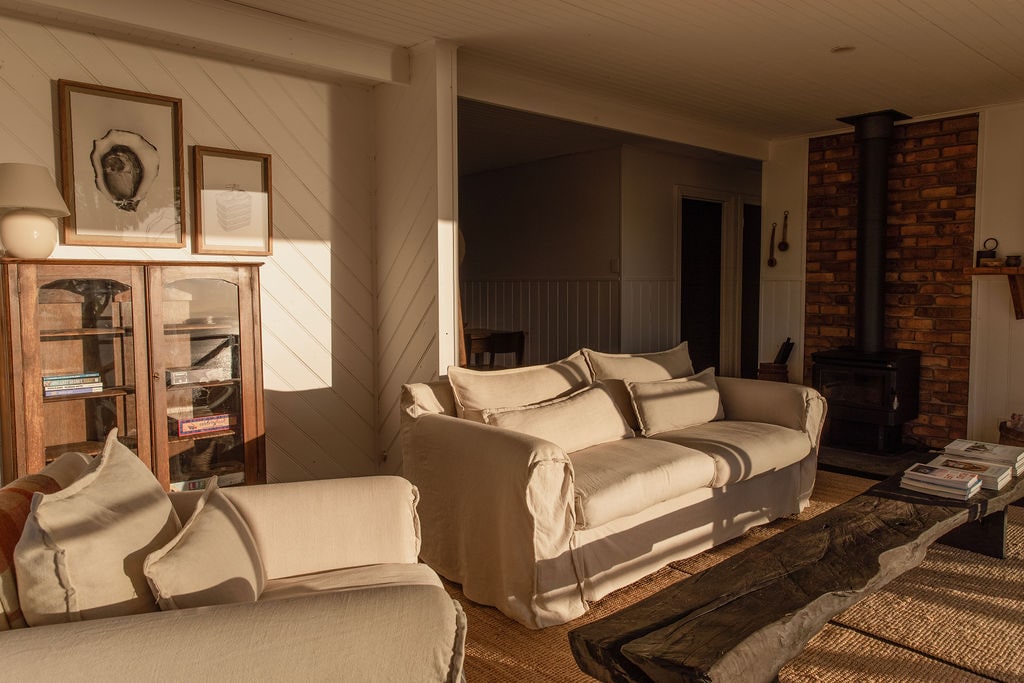 Old Jetty Joint ønsker deg velkommen med en koselig hyttestemning fra 1970-tallet. Dette klassiske tasmanske skuret har blitt gjennomtenkt renovert for å dra full nytte av den spektakulære beliggenheten – med utsikt over Pirates Bay, bare 150 meter fra stranden. Med en av Tasmanias mest fantastiske bukter rett over veien, vil blikket ditt hoppe over uendelig mellom de store linjene og den dramatiske kysten utover. Pakk surfebrettet eller hold timene unna stranden med den uberørte hvite sanden. @theoldjettyjoint