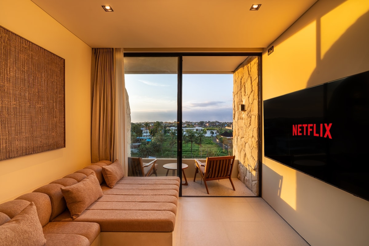 Discover Sore Tumbak Bayuh Studio, a 1BR hideaway set in Canggu’s calm Tumbak Bayuh enclave, thoughtfully crafted for you to relax. Featuring a private balcony that opens to gentle rice-field scenery and tropical foliage, it’s a welcoming retreat for seeking comfort, ease, and island sophistication near Canggu’s lively scene. • Balcony lounge, open-plan layout & wide paddy outlooks • 8 mins to Pererenan Beach for surfing & sunset moments • Fast Wi-Fi, 24/7 guest support & concierge services
