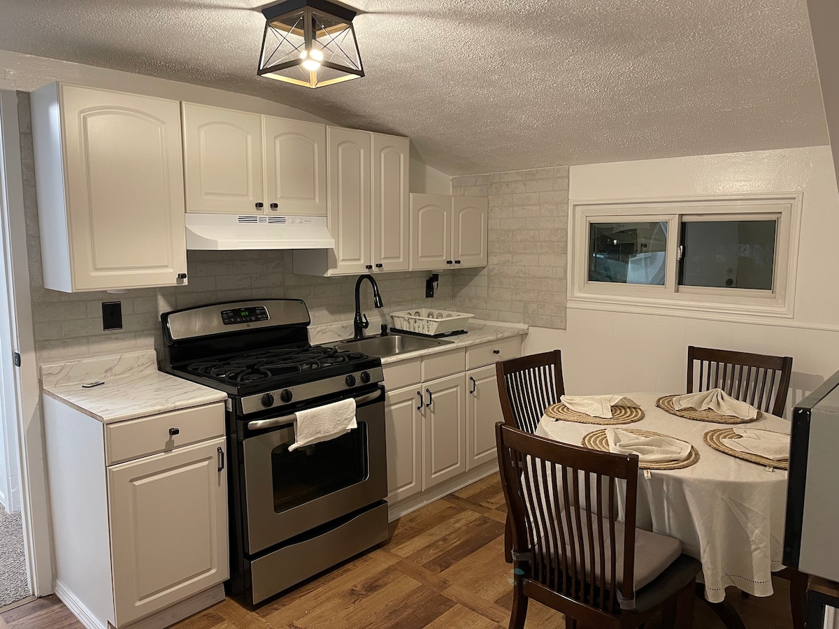 Perfekt for enslige reisende eller par. Dette nye, koselige studioet er en del av et større hjem, men helt selvstendig med egen inngang. Inne finner du: - En komfortabel stue med en uttrekkbar enkeltseng og sitteplasser - et kjøkken med basisartikler for lett matlaging - et privat bad med dusj, håndklær og toalettartikler - trådløst nettverk med høy hastighet og flatskjerm-TV Selv om stedet ditt er tilknyttet hjemmet vårt, er stedet ditt privat. Beliggende i et rolig nabolag i nærheten av attraksjoner, restauranter og transport.