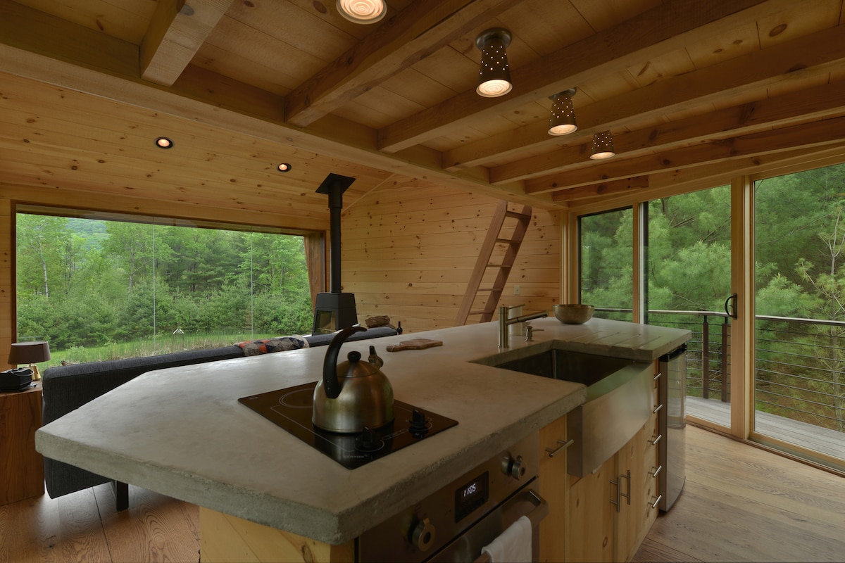 The GlassHouse: Minihus i Hudson Valley med bålplass
