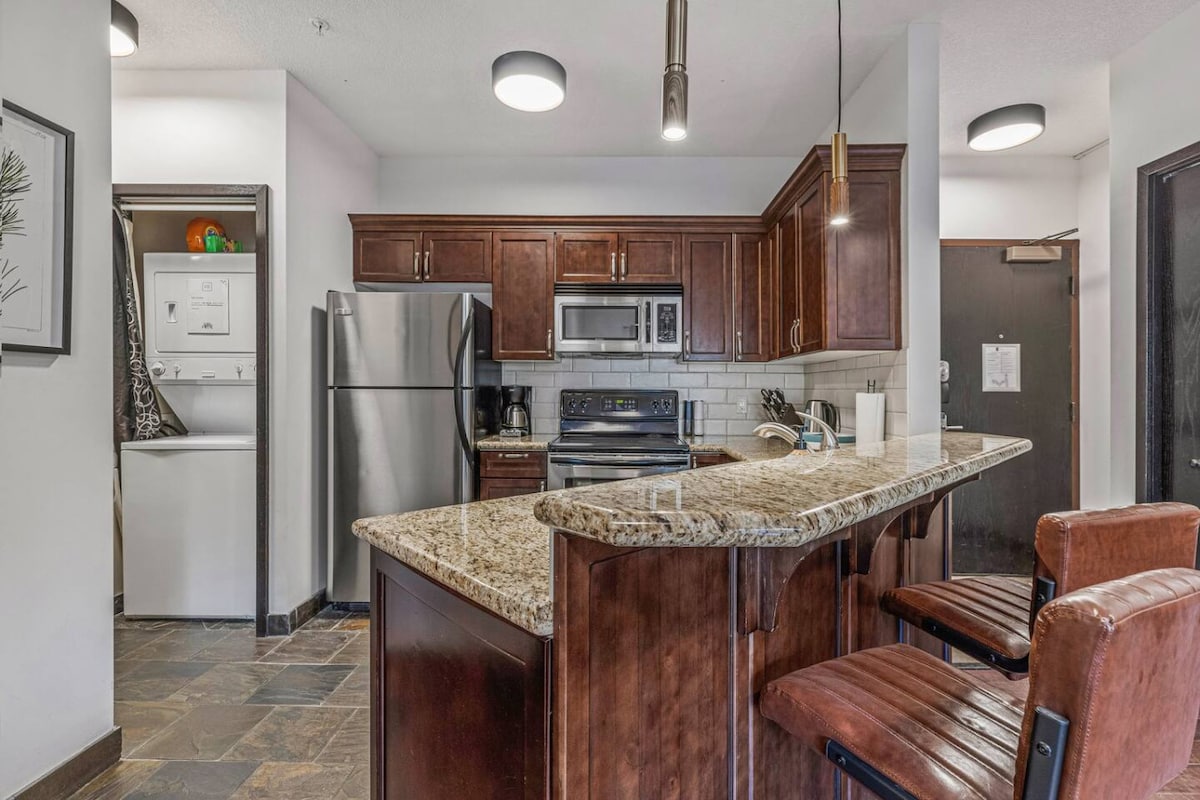 En romslig enhet med ett soverom i hjertet av Spring Creek og gangavstand til alle restaurantene, butikkene og barene i sentrum. Denne enheten har et gourmetkjøkken som er fullt utstyrt, og en stor terrasse med utsikt over feriestedets gårdsplass (fortsatt under bygging). I tillegg har denne avslappende enheten smart-TV, trådløst nettverk, gasspeis og underjordisk parkeringsplass. Dra nytte av feriestedets boblebad og treningsstudio, og kall dette stedet hjem for neste eventyr. Tilbakevendende gjester får 10 % rabatt.