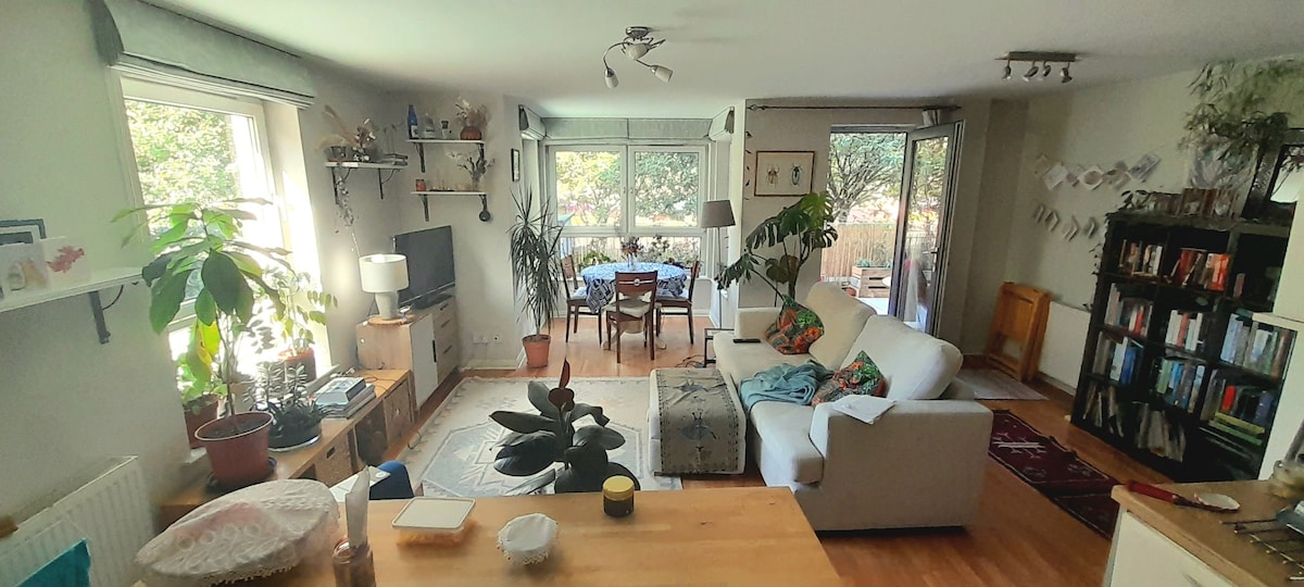 En lys, moderne leilighet i det pulserende området Leith. Leiligheten min ligger ved foten av Leith Walk. Leith er kjent for sin fellesskapsfølelse og åpenhet, og har et mangfoldig utvalg av puber, kafeer og restauranter langs hele gaten. Det naturskjønne Shore-området ligger ti minutters gange unna. Edinburgh-trikkene kjører nå direkte fra Edinburgh lufthavn til leiligheten. Holdeplassen ligger ved foten av promenaden, mindre enn tre minutter unna. Trikkene stopper også på begge togstasjonene i sentrum.