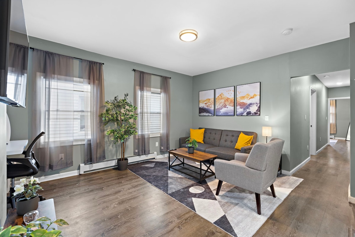 ⭐ Moderne og koselig | 3 soverom • Gratis parkering i oppkjørselen • 16 minutter → EWR • 30 minutter → NYC Våkn opp i en komfortabel, stille og moderne leilighet designet for komfort, stil og bekvemmelighet. Enten du besøker New York City for eventyr, forretningsreiser, konserter, familieturer eller en avslappende ferie, gir dette stedet deg den perfekte balansen: ✔ Fredelig tilfluktssted ✔ Enkel tilgang til New York City. ✔ Moderne design ✔ Plass til grupper og familier ✨ 10 % RABATT på opphold på 7 netter eller lenger