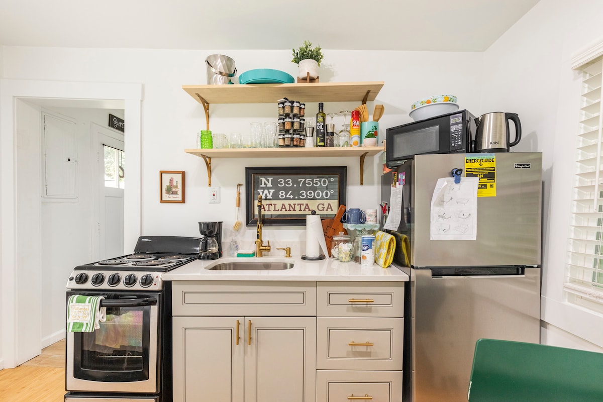Slapp av i dette koselige og renoverte gjestehjemmet med alle fasiliteter. Ligger mindre enn ti minutters gange fra East Atlanta Village og ulike restauranter, barer og underholdning, så Uber er ikke nødvendig. Dessuten ligger hjemmet bare ti minutter med bil fra Downtown ATL. Dette er en studioleilighet med ett soverom og ett bad, med fullt kjøkken og spiseplass. Oppholdet ditt kommer med bålplass, smart-TV og kontorplass. Parkeringen på stedet er stor nok til to biler. Nyt tiden i ATL med familien din.